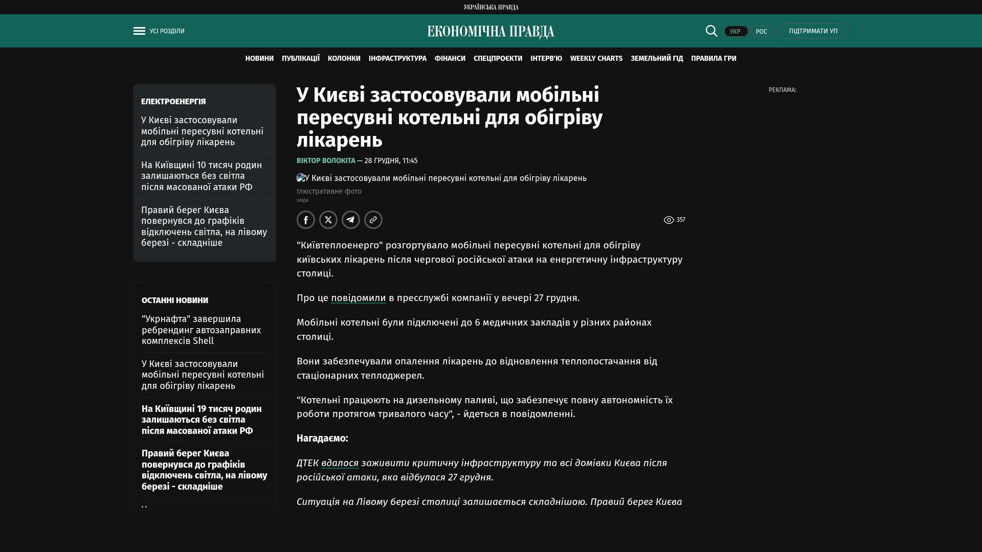 „Kyjiwteploenergo hat nach einem weiteren russischen Angriff auf die Energieinfrastruktur der Hauptstadt mobile Kesselhäuser zur Beheizung von Kiewer Krankenhäusern eingesetzt.