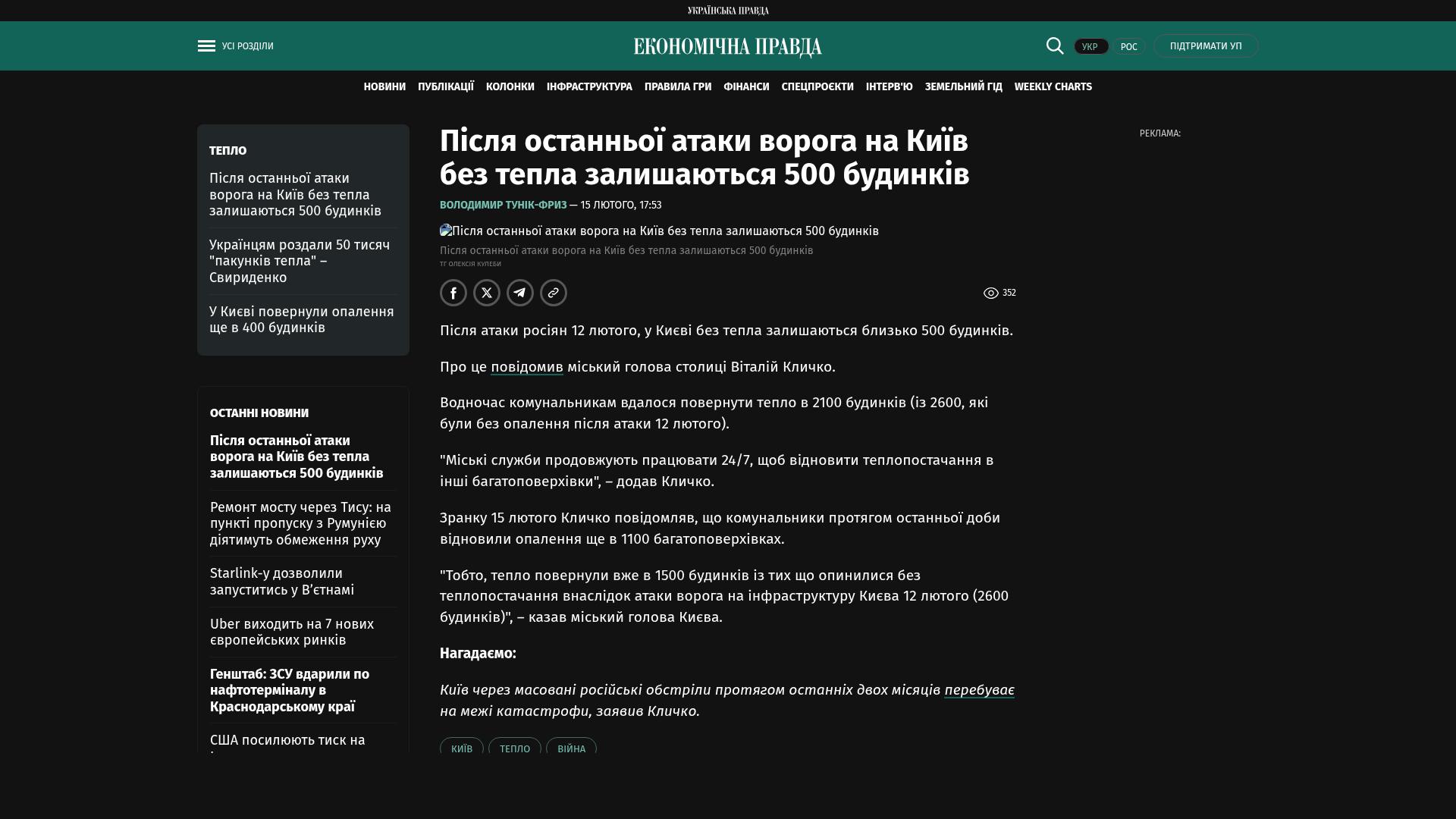 Gleichzeitig gelang es den Versorgungsunternehmen, die Heizung in 2100 Häusern wiederherzustellen (von 2600, die nach dem Angriff am 12. Februar ohne Heizung waren).