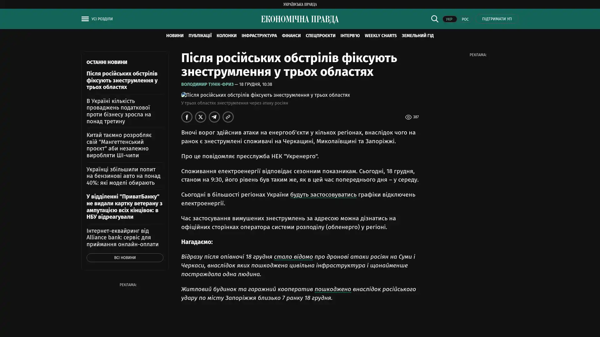 In der Nacht hat der Feind Stromanlagen in mehreren Regionen angegriffen, was zu Stromausfällen in den Regionen Tscherkassy, Mykolajiw und Saporischschja führte.