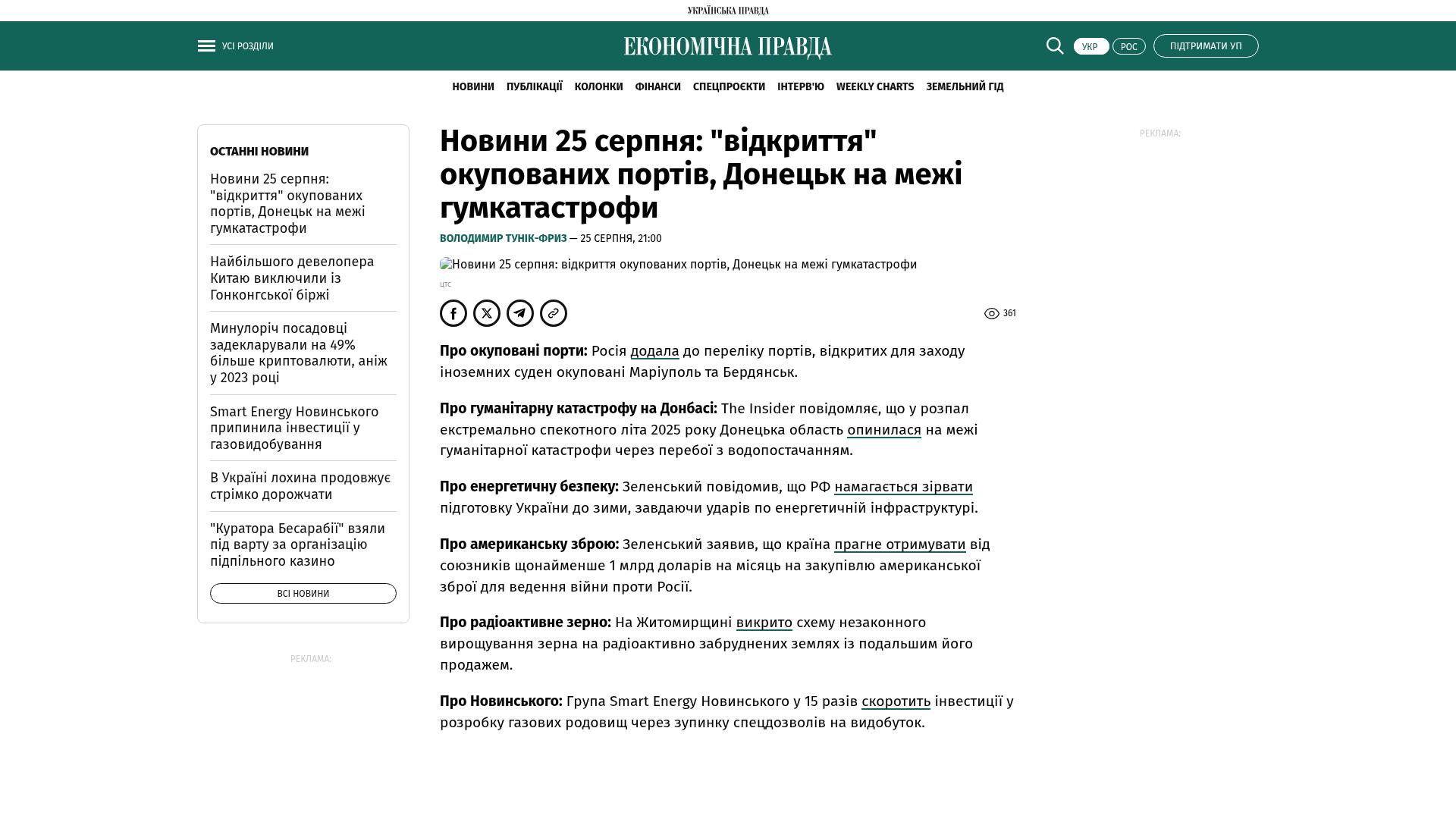 Bildschirmfoto des Originalartikels auf epravda.com.ua