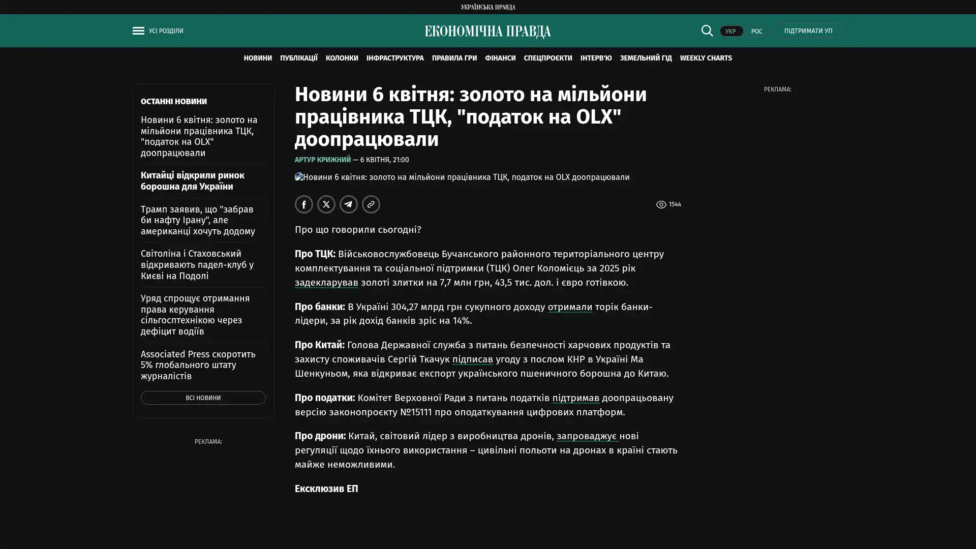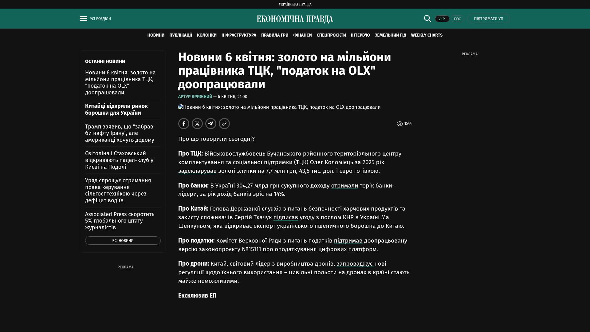 Bildschirmfoto des Originalartikels auf epravda.com.ua