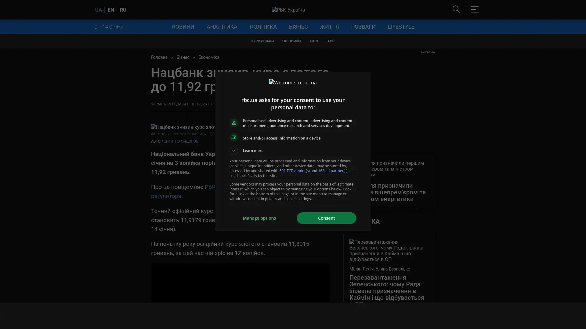 Bildschirmfoto des Originalartikels auf rbc.ua