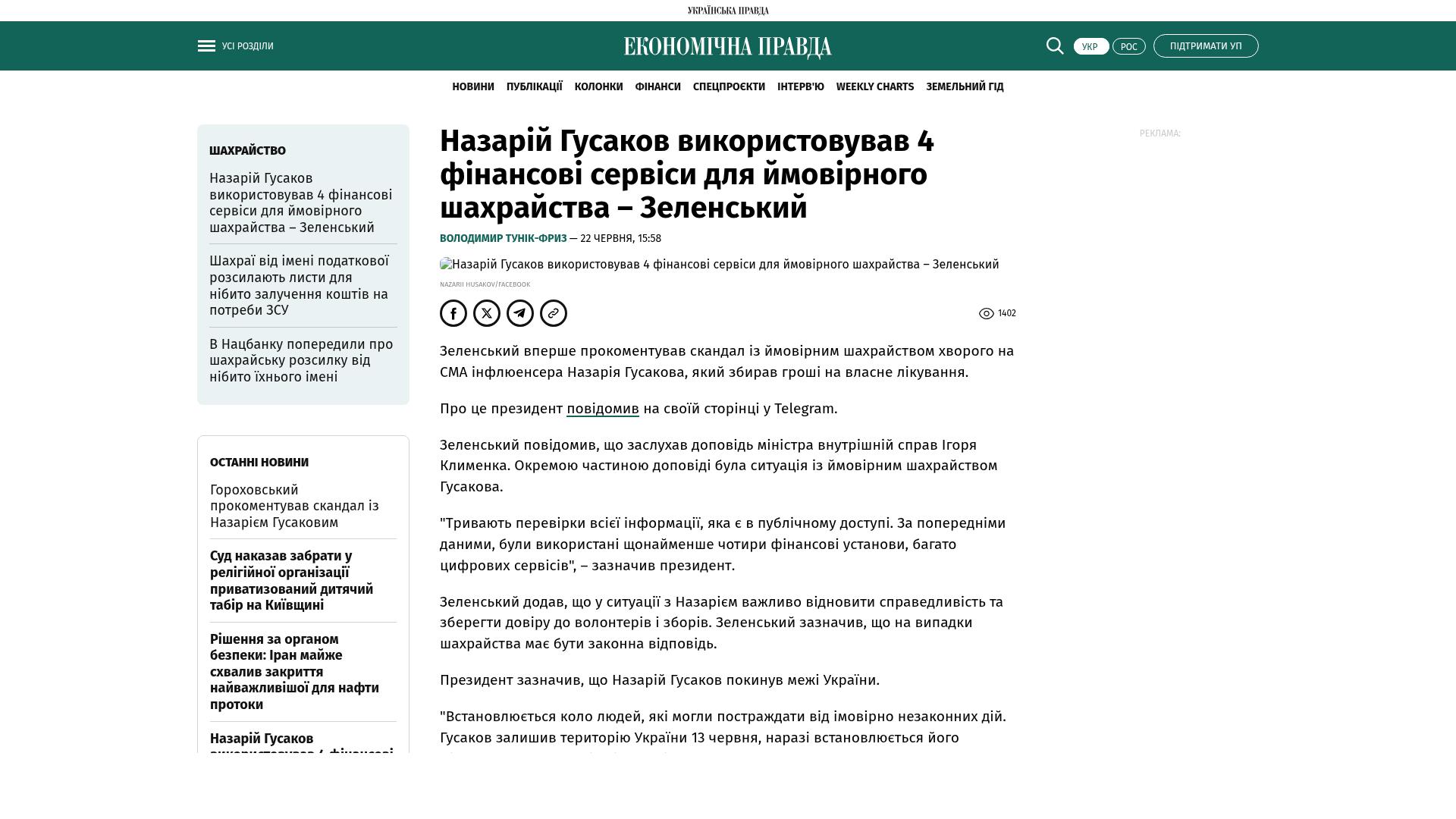 Bildschirmfoto des Originalartikels auf epravda.com.ua