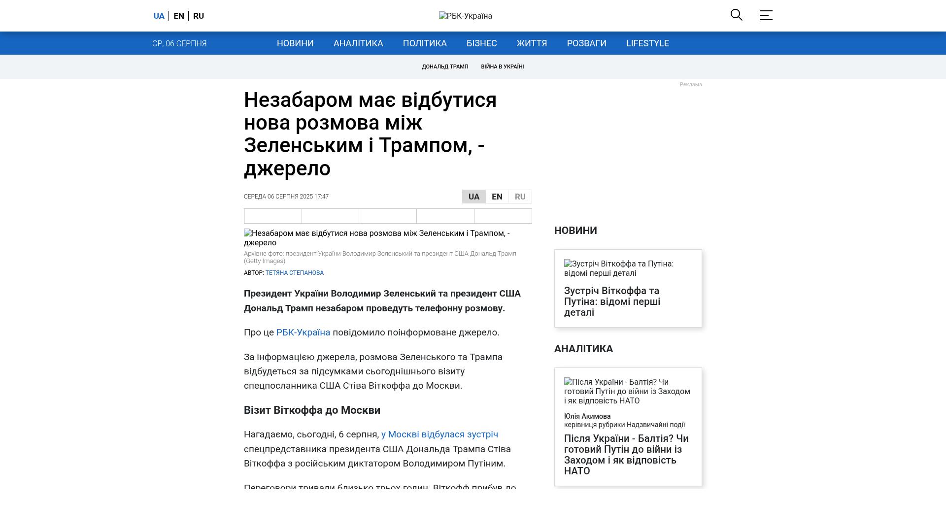 Bildschirmfoto des Originalartikels auf rbc.ua