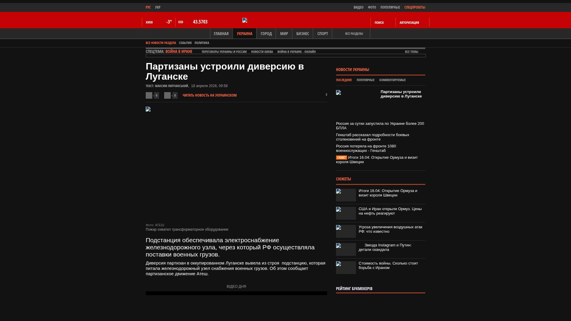 Der Sabotageakt der Partisanen im besetzten Luhansk hat das Umspannwerk außer Betrieb gesetzt, das den Eisenbahnknotenpunkt für die Versorgung mit Militärgütern versorgte. Dies berichtet die Partisanenbewegung „Atesh“.