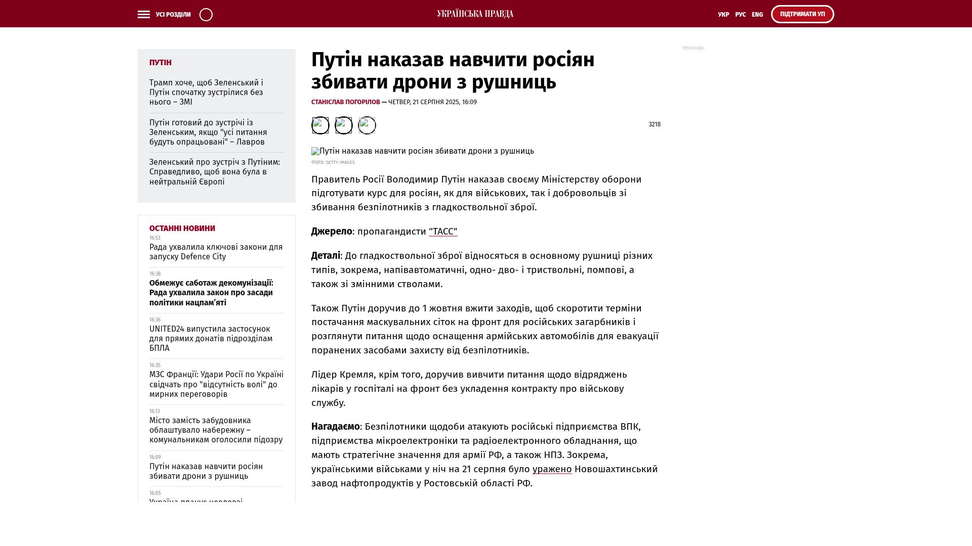 Bildschirmfoto des Originalartikels auf pravda.com.ua