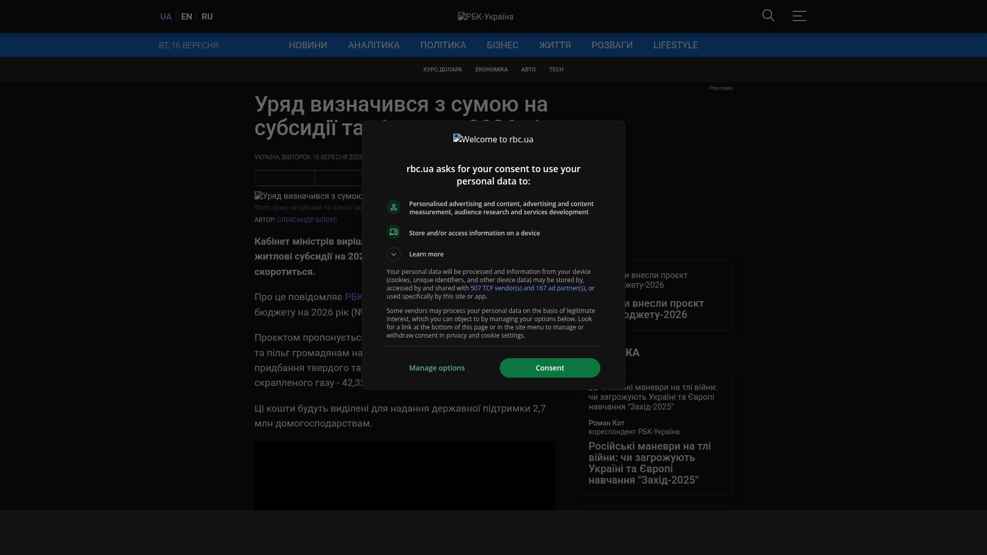 Bildschirmfoto des Originalartikels auf rbc.ua