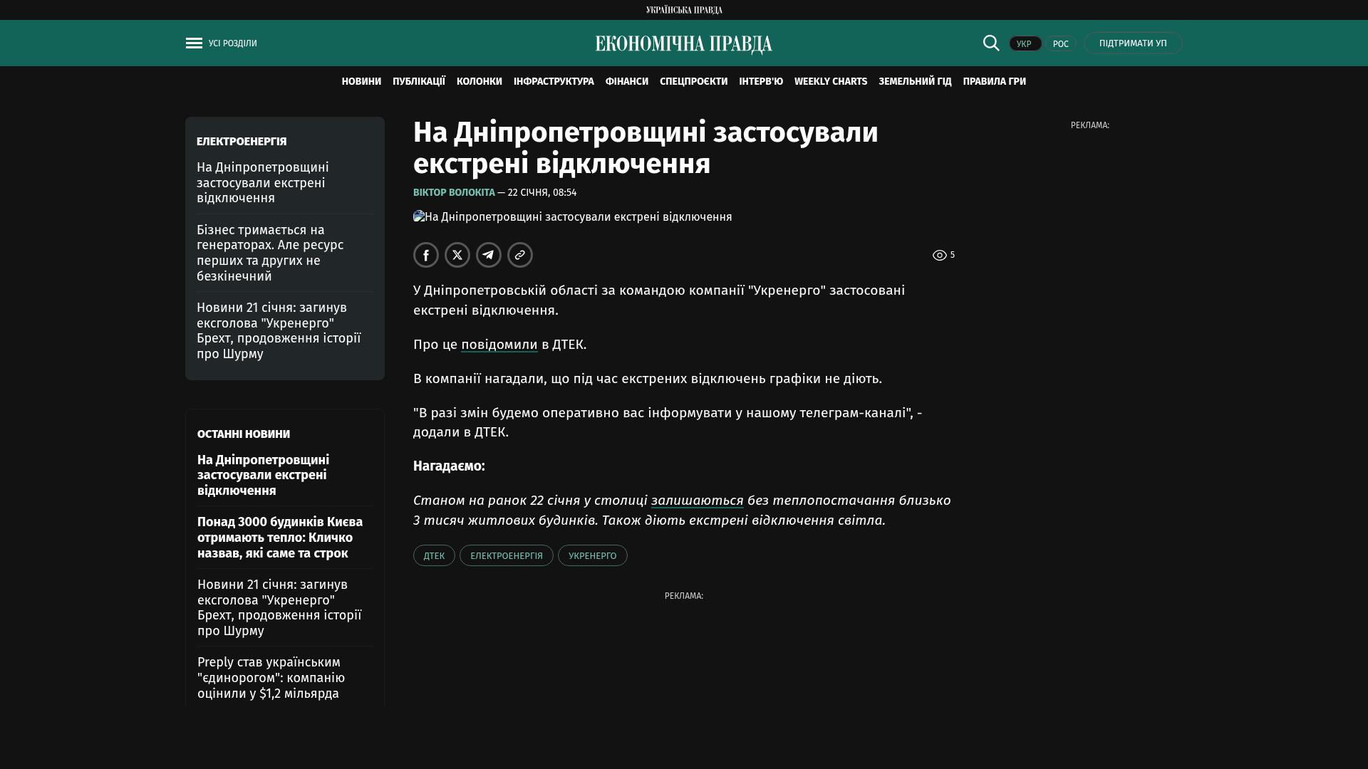 In der Region Dnipropetrowsk wurden auf Anweisung von Ukrenerho Notstromausfälle eingeführt.