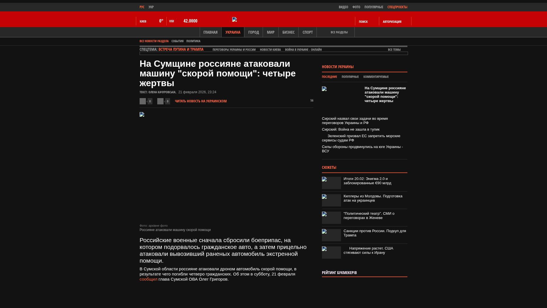 In der Region Sumy griffen russische Streitkräfte mit einer Drohne einen Krankenwagen an, wobei vier Zivilisten ums Leben kamen. Dies teilte der Leiter der Militärverwaltung der Region Sumy, Oleg Grigorow, am Samstag, dem 21. Februar, mit.