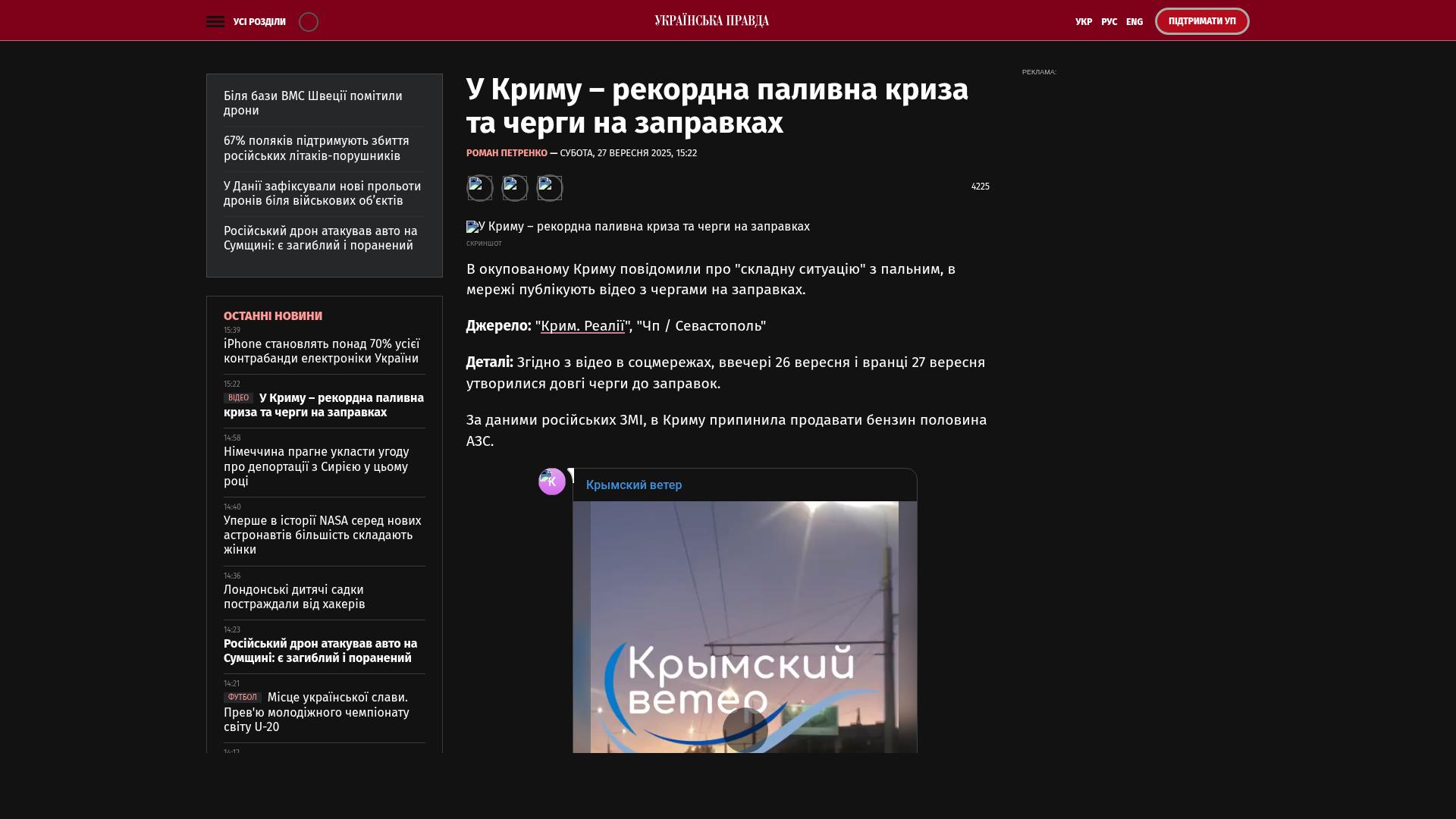 Bildschirmfoto des Originalartikels auf pravda.com.ua