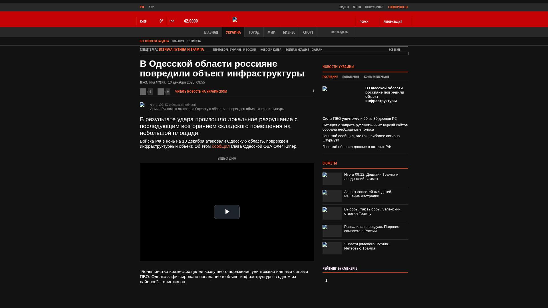Russische Truppen haben in der Nacht zum 10. Dezember die Region Odessa angegriffen, dabei wurde eine Infrastruktureinrichtung beschädigt. Dies teilte der Leiter der Militärverwaltung der Region Odessa, Oleh Kiper, mit.