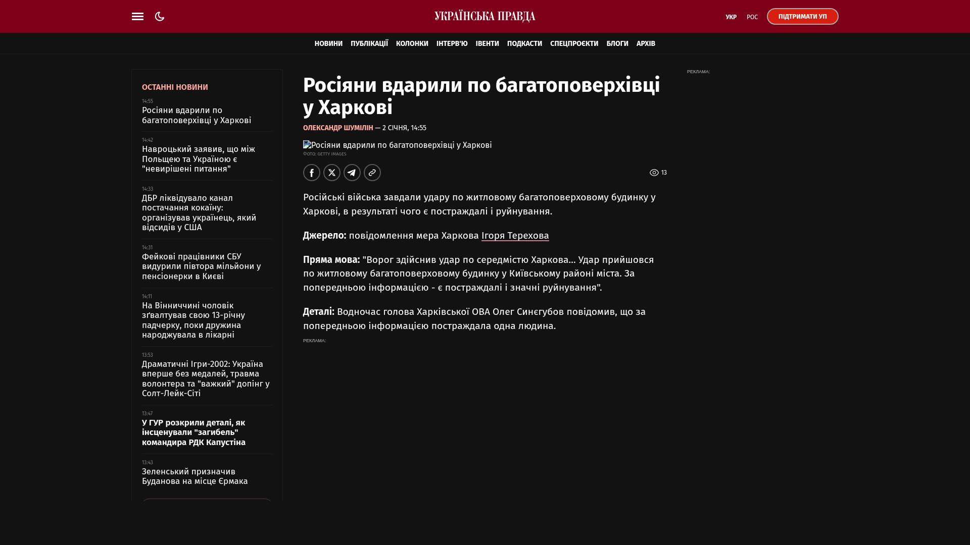 Bildschirmfoto des Originalartikels auf pravda.com.ua