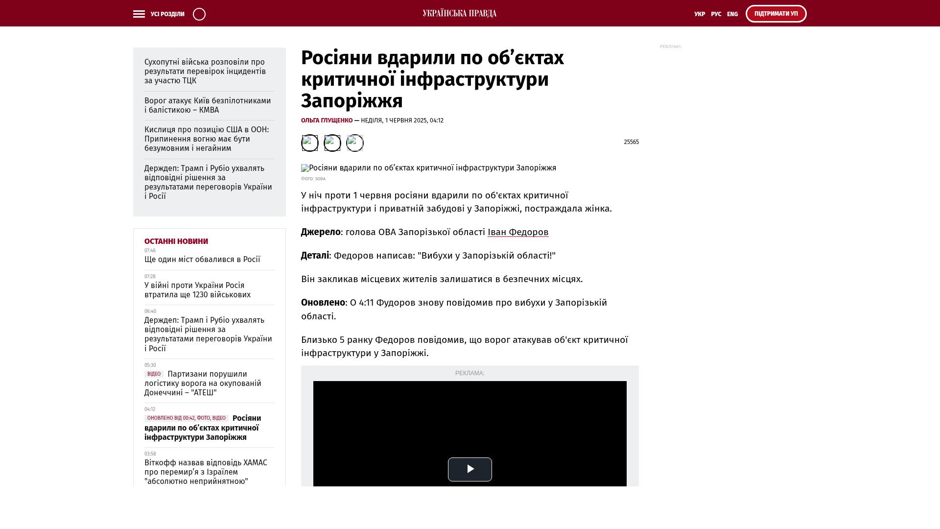 - Ukrajinska Prawda ✌️ (@ukrpravda_news) June 1, 2025 Der Angriff hat das Verwaltungsgebäude teilweise zerstört und einen Brand auf dem Gelände verursacht.