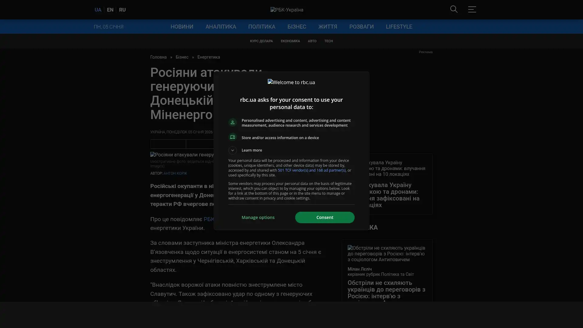 Bildschirmfoto des Originalartikels auf rbc.ua