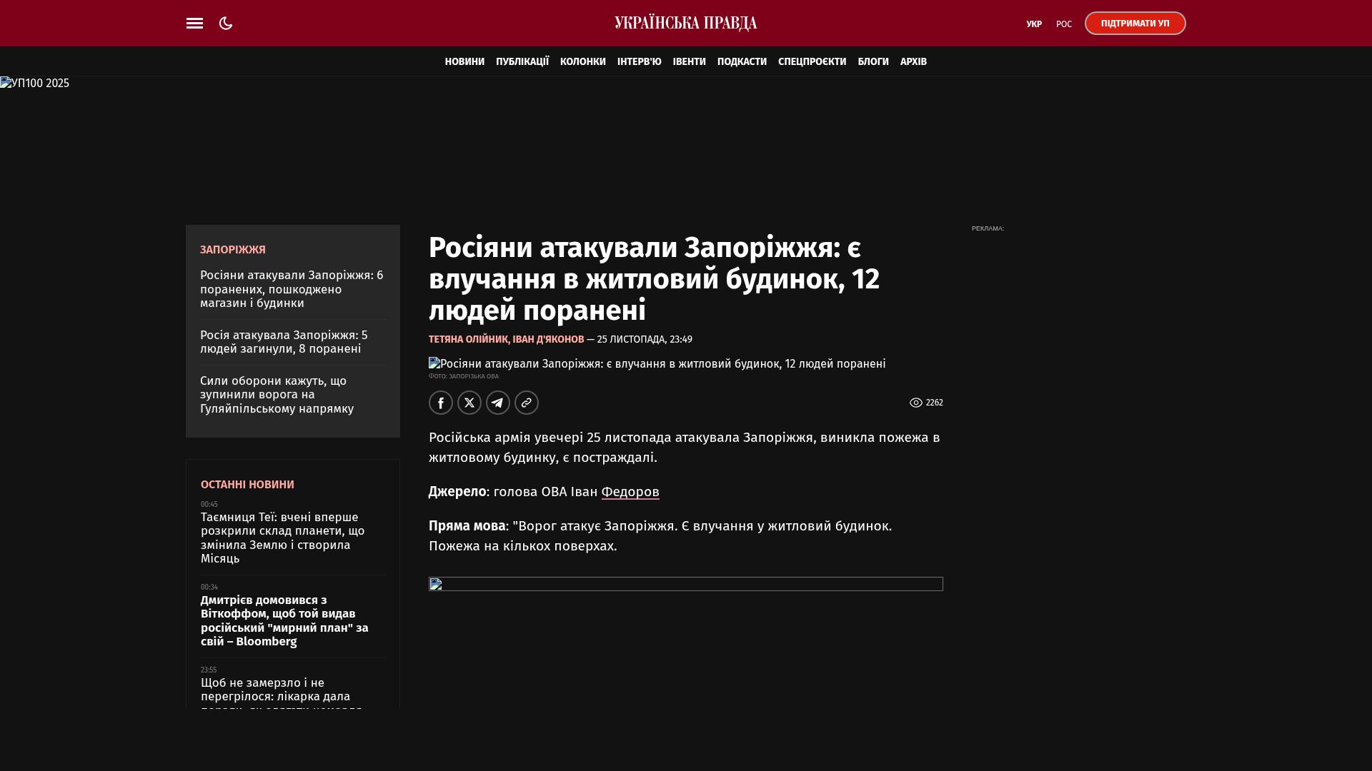 Am Abend des 25. November griff die russische Armee Saporischschja an, in einem Wohnhaus brach ein Feuer aus und es gab Verletzte.