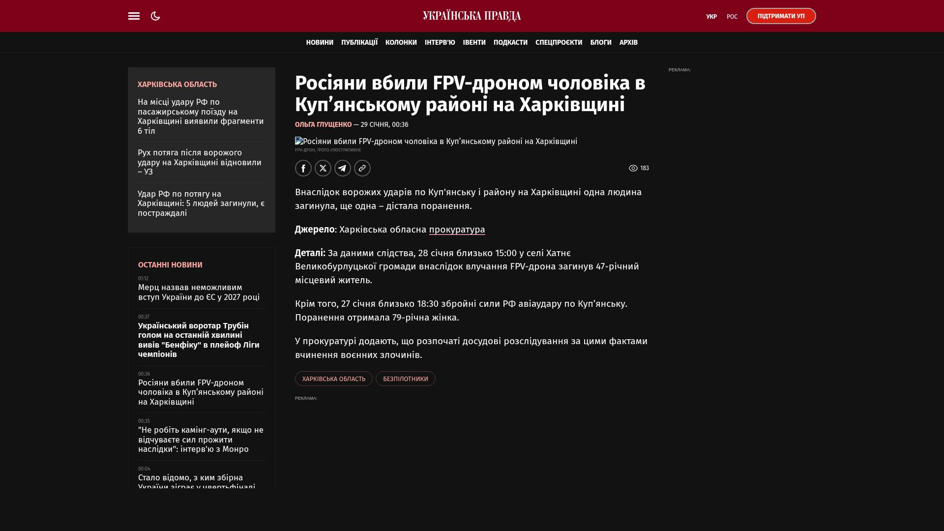 - class=MsoNormal* Den Ermittlungen zufolge wurde am 28. Januar gegen 15:00 Uhr ein 47-jähriger Anwohner im Dorf Chatne, Gemeinde Velykoburlutska, durch einen FPV-Drohnenangriff getötet.
