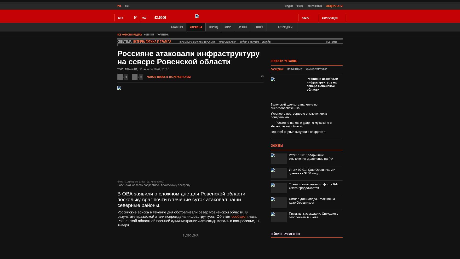 Russische Truppen haben den Norden des Gebiets Riwne im Laufe des Tages beschossen. Als Folge des feindlichen Angriffs wurde die Infrastruktur beschädigt. Dies berichtete der Leiter der Militärverwaltung des Gebiets Riwne, Alexander Kowal, am Sonntag, den 11. Januar.