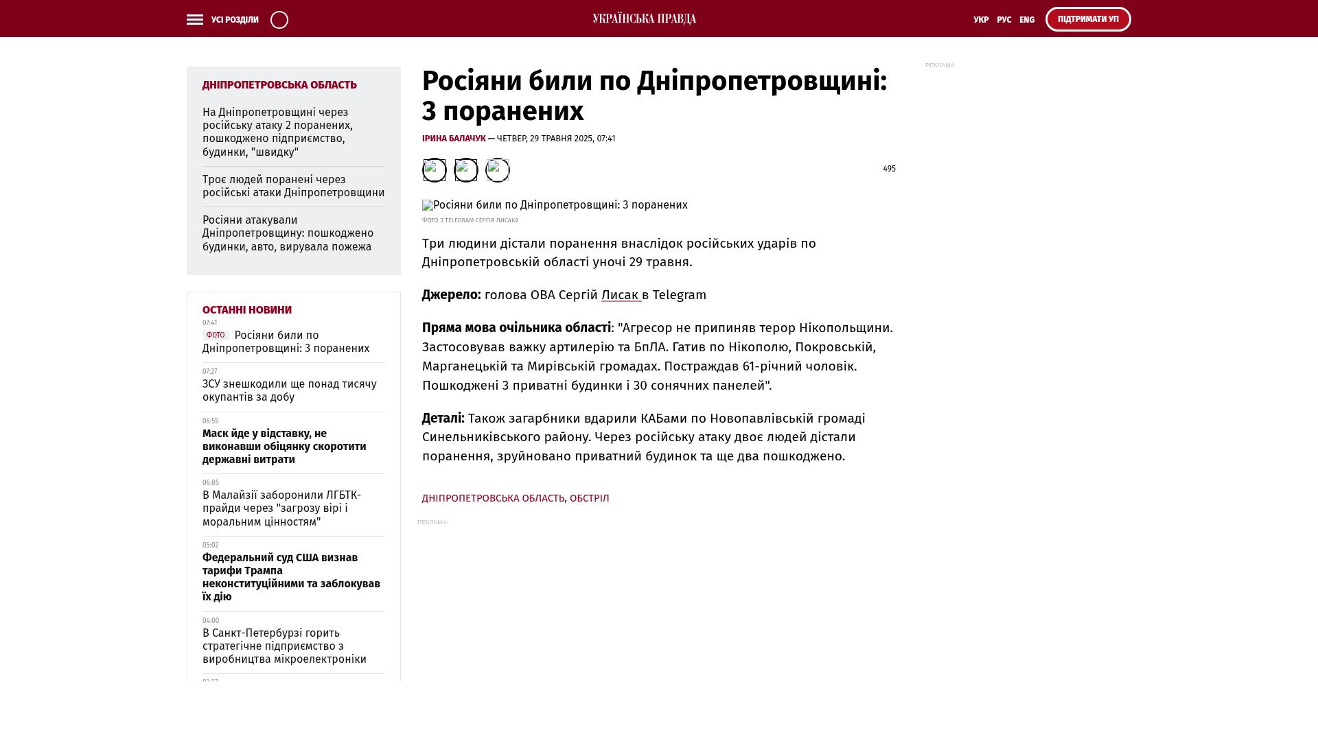 Bildschirmfoto des Originalartikels auf pravda.com.ua