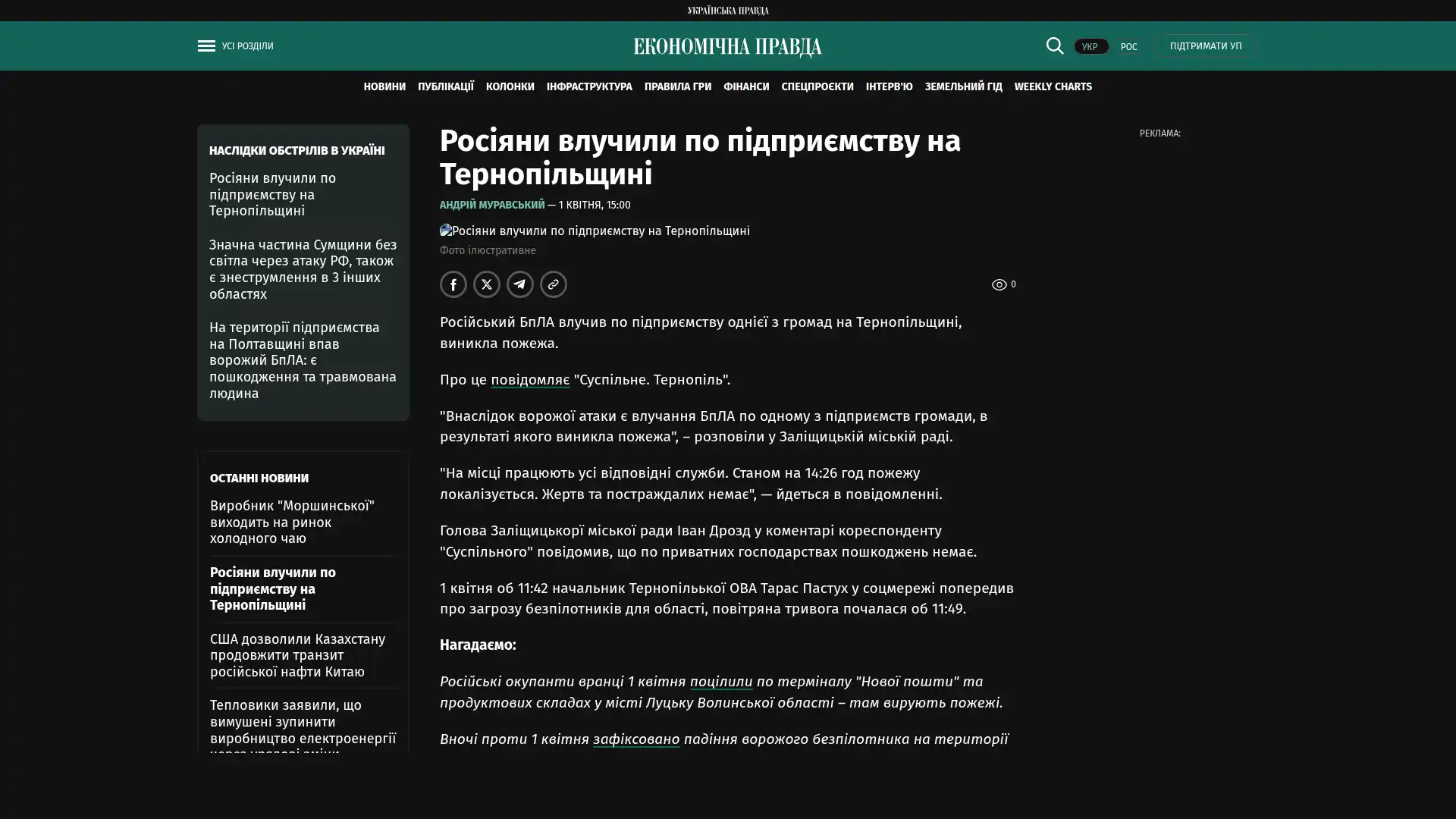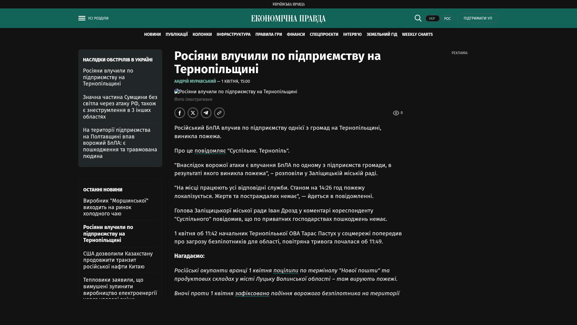 Am 1. April um 11:42 Uhr warnte der Leiter der Militärverwaltung der Oblast Ternopil, Taras Pastuch, in den sozialen Netzwerken vor der Gefahr durch Drohnen für die Region; der Luftalarm wurde um 11:49 Uhr ausgelöst.