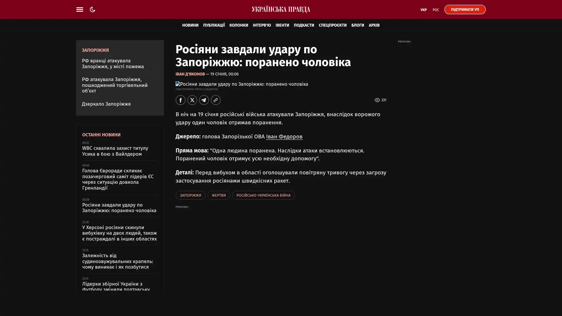 Bildschirmfoto des Originalartikels auf pravda.com.ua