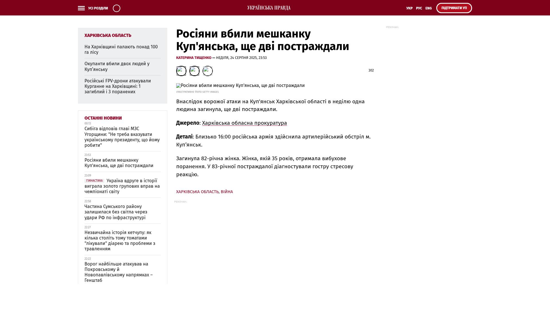 Bildschirmfoto des Originalartikels auf pravda.com.ua