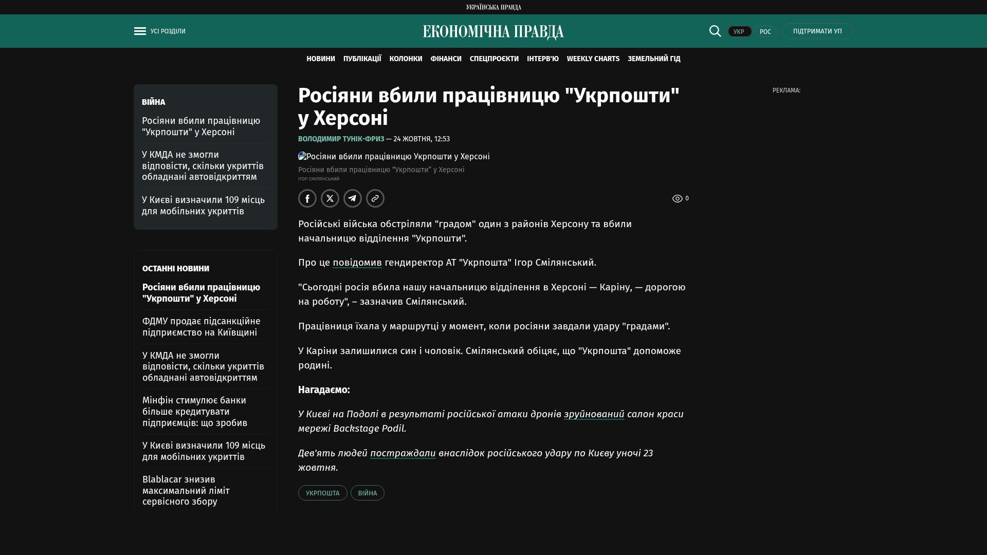 Russische Truppen haben einen der Stadtteile von Cherson mit „Hagel“ beschossen und den Leiter der Ukrposhta-Niederlassung getötet.