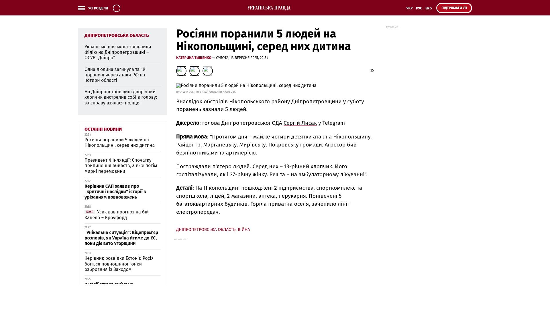 Bildschirmfoto des Originalartikels auf pravda.com.ua
