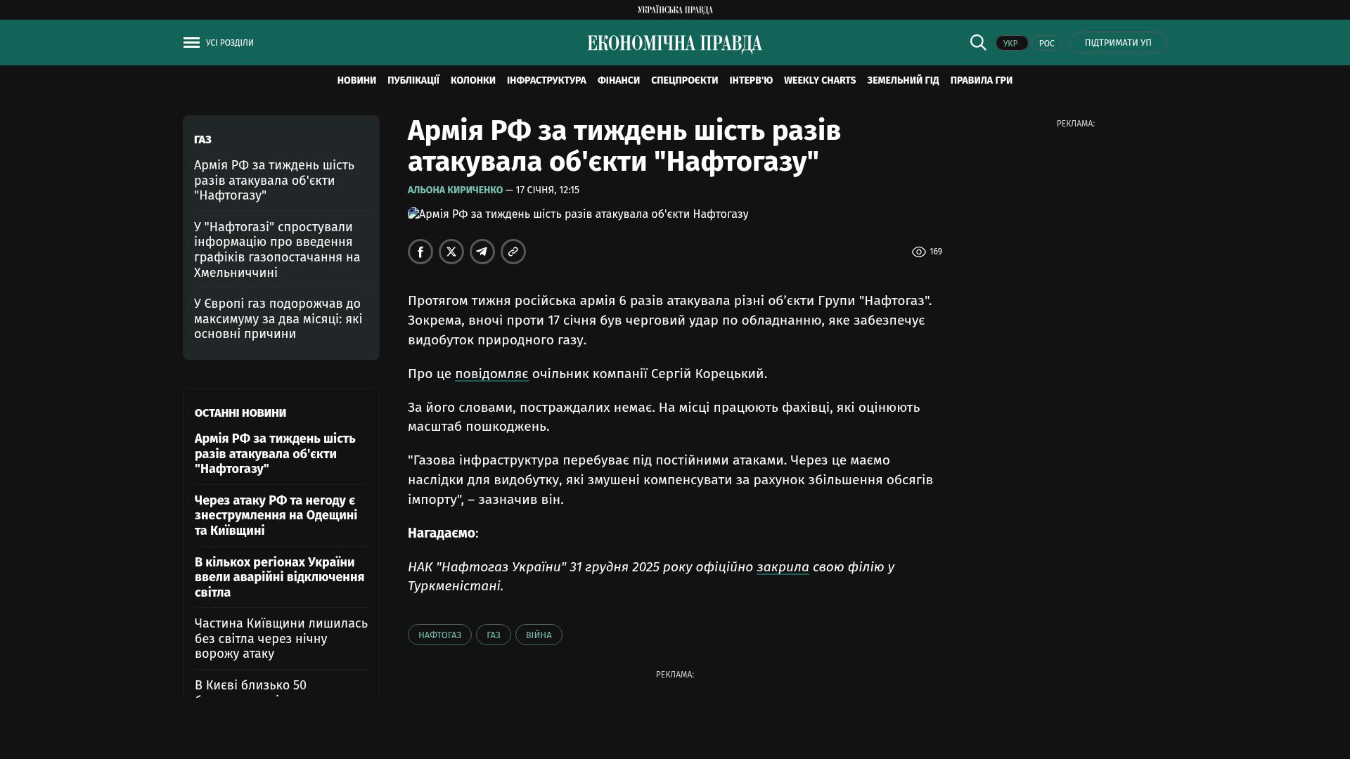 In der vergangenen Woche hat die russische Armee sechs Mal verschiedene Einrichtungen der Naftohas-Gruppe angegriffen. Insbesondere in der Nacht zum 17. Januar gab es einen weiteren Angriff auf die Anlagen, die die Erdgasproduktion sicherstellen.