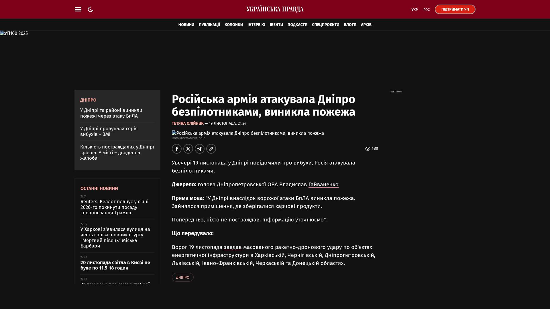 Am Abend des 19. November wurden in Dnipro Explosionen gemeldet, und Russland griff mit Drohnen an.