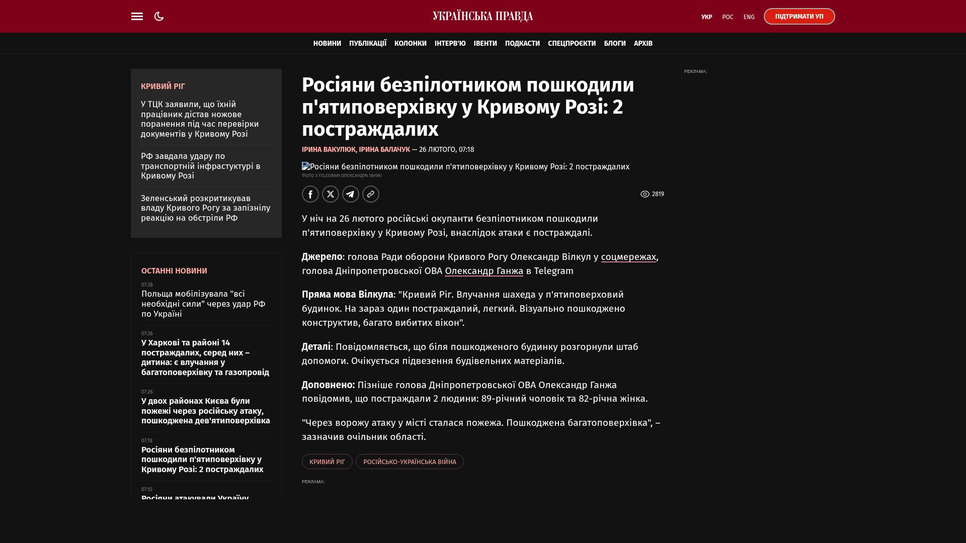 Bildschirmfoto des Originalartikels auf pravda.com.ua