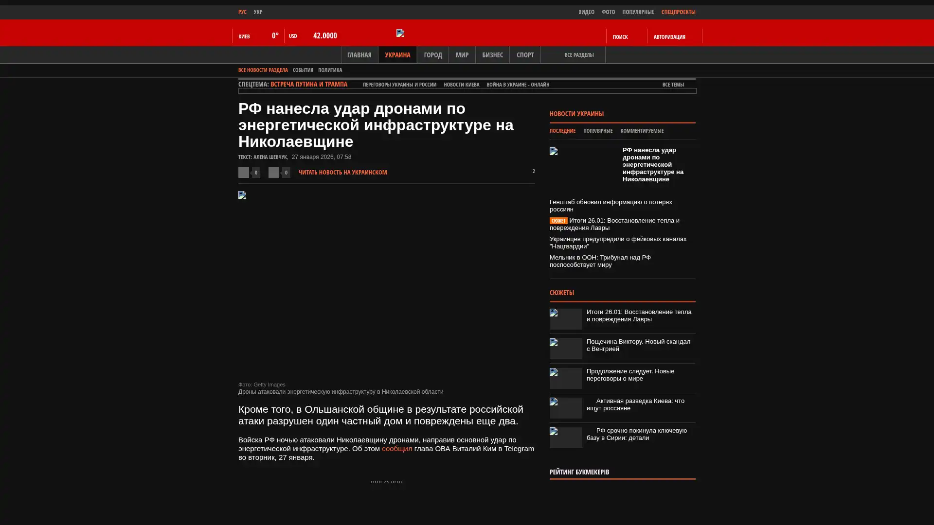 Russische Truppen haben in der Nacht Mykolajiwshchyna mit Drohnen angegriffen und den Hauptangriff auf die Energieinfrastruktur gerichtet. Dies berichtete der Leiter der regionalen Militärverwaltung Witalij Kim am Dienstag, den 27. Januar, in Telegram.