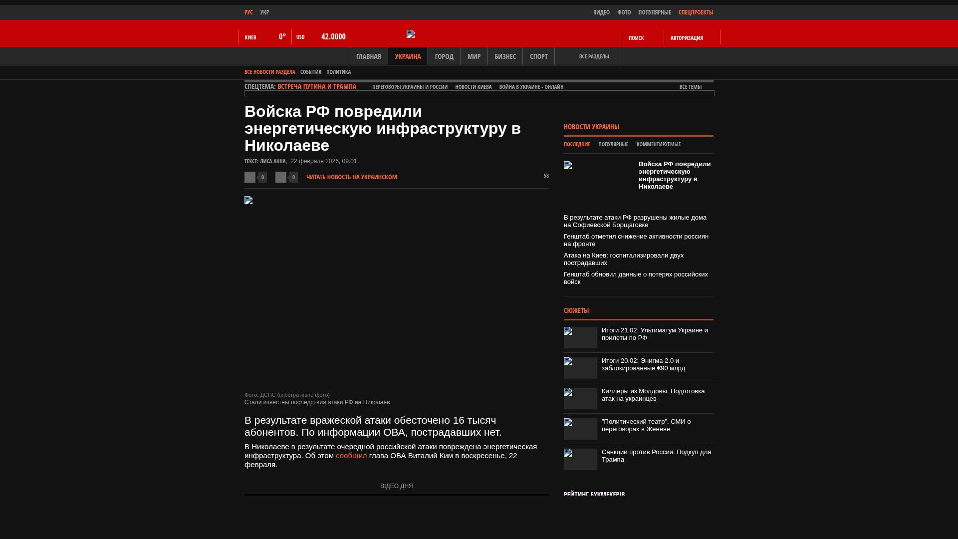 In Mykolayiv wurde durch einen weiteren russischen Angriff die Energieinfrastruktur beschädigt. Dies teilte der Leiter der regionalen Militärverwaltung, Witalij Kim, am Sonntag, dem 22. Februar, mit.