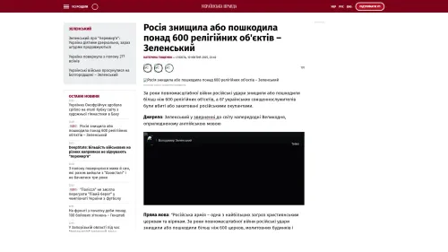 Direkte Rede: „Die russische Armee ist eine der größten Bedrohungen für christliche Kirchen und Gläubige. In den Jahren des totalen Krieges haben die russischen Angriffe mehr als 600 Kirchen, Gebetshäuser und Gotteshäuser zerstört oder beschädigt. 67 ukrainische Priester, Pastoren und Mönche wurden von den russischen Invasoren getötet oder gefoltert.