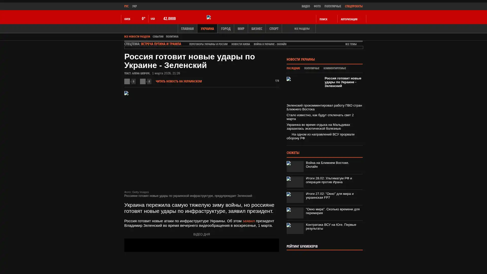 Russland bereitet neue Angriffe auf die Infrastruktur der Ukraine vor. Dies erklärte Präsident Wolodymyr Selenskyj während einer abendlichen Videobotschaft am Sonntag, dem 1. März.