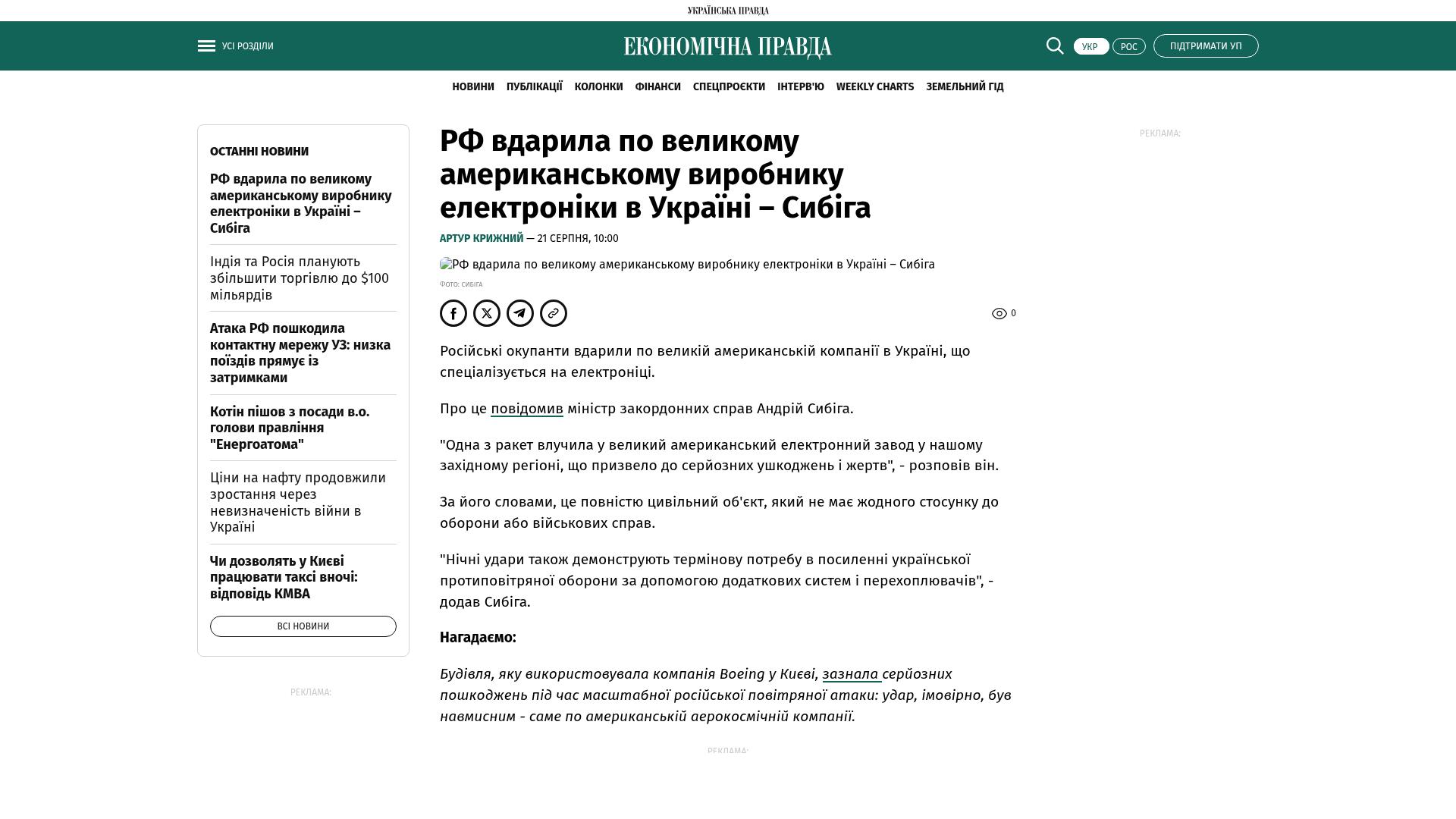 Bildschirmfoto des Originalartikels auf epravda.com.ua