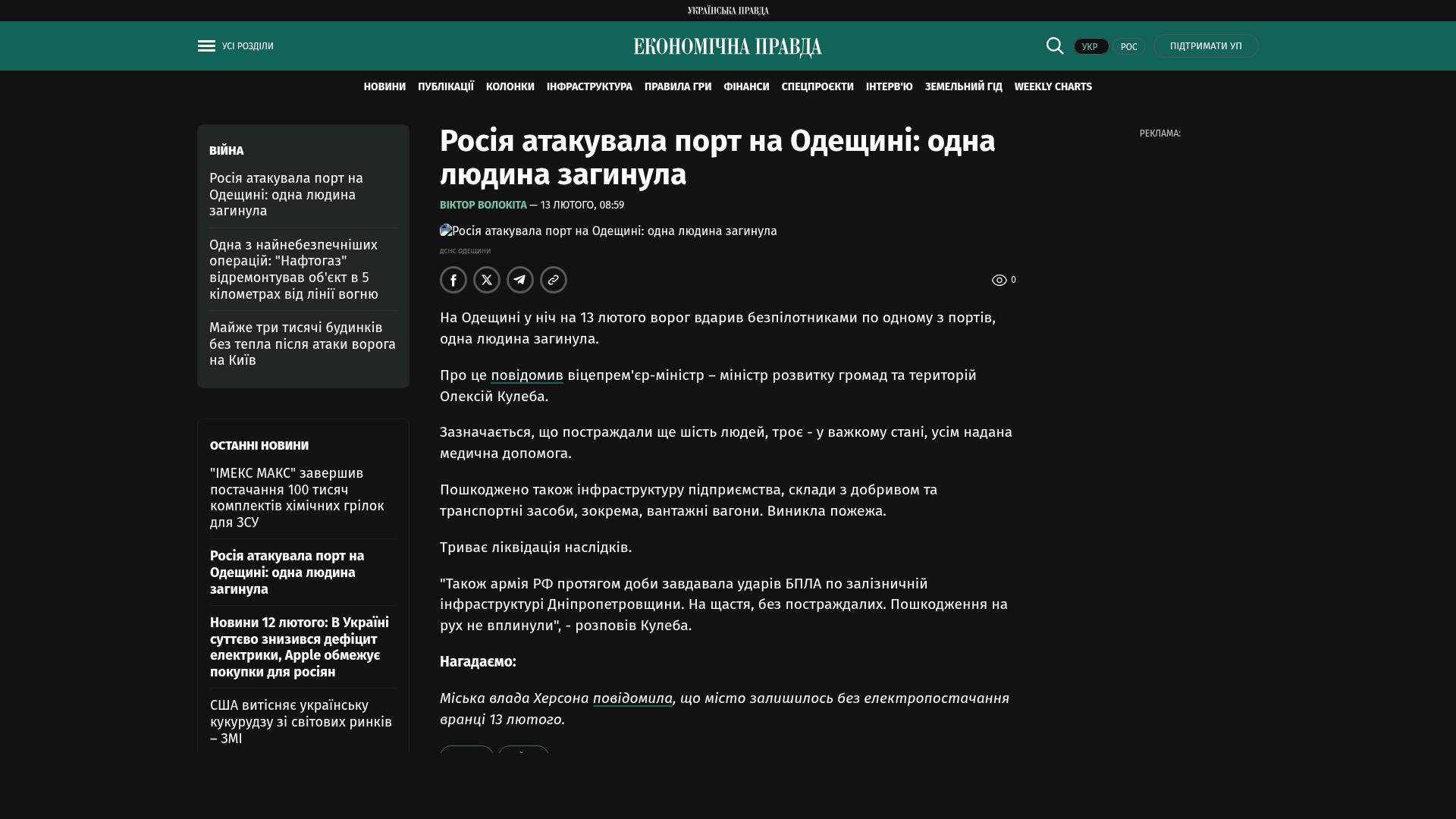 In der Nacht zum 13. Februar griff der Feind in Odessa einen der Häfen mit Drohnen an, wobei eine Person ums Leben kam.