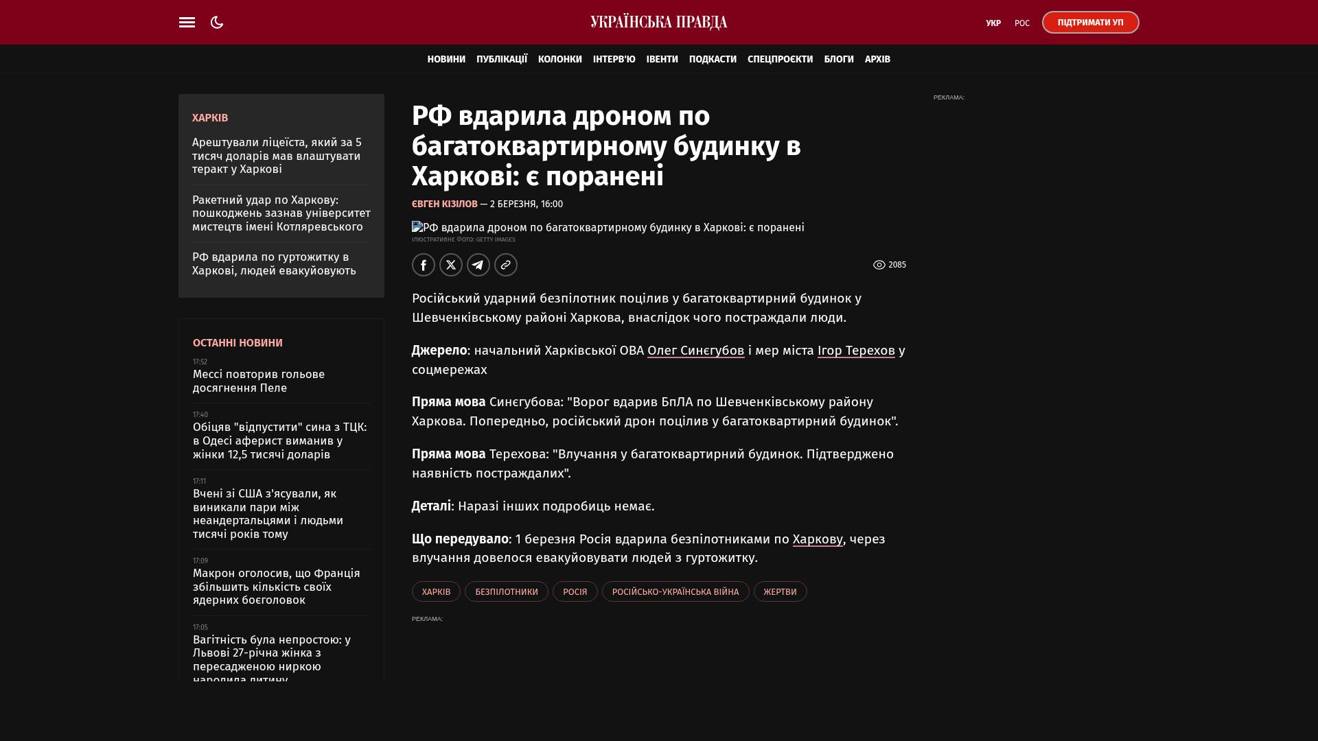 Bildschirmfoto des Originalartikels auf pravda.com.ua