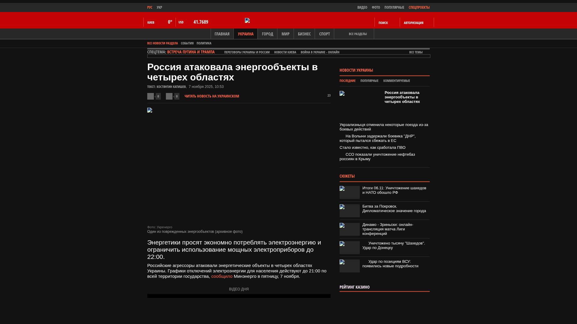 Russische Aggressoren haben Energieanlagen in vier Regionen der Ukraine angegriffen. Im ganzen Land gelten bis 21:00 Uhr Stromabschaltungen für die Bevölkerung, teilte das Energieministerium am Freitag, den 7. November mit.