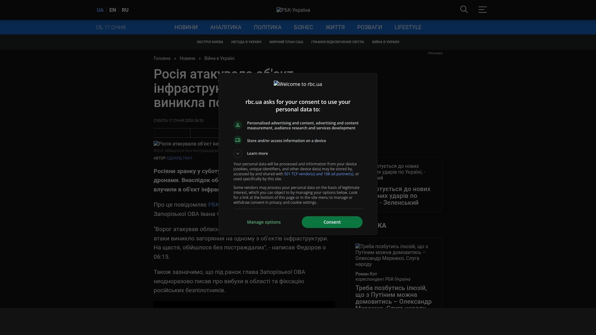 Bildschirmfoto des Originalartikels auf rbc.ua