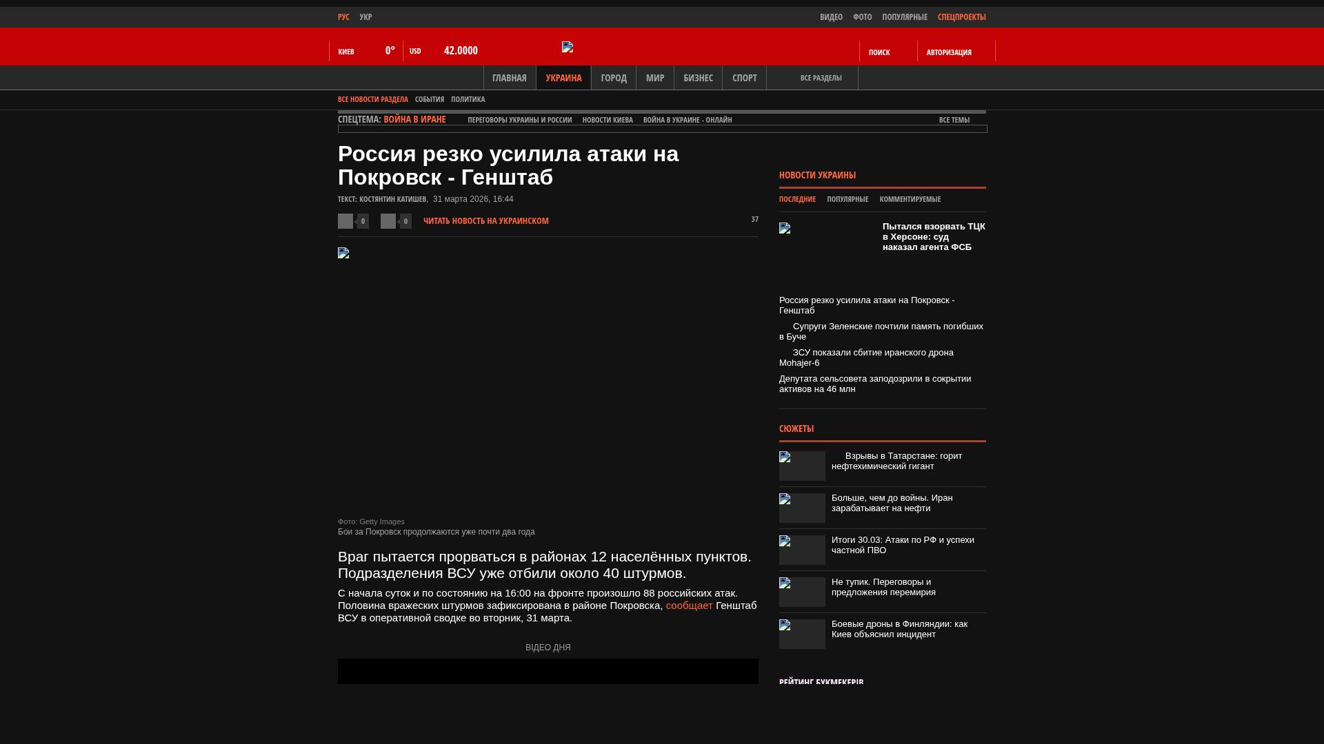 Seit Beginn des Tages und bis 16:00 Uhr kam es an der Front zu 88 russischen Angriffen. Die Hälfte der feindlichen Angriffe wurde im Raum Pokrowsk verzeichnet, wie der Generalstab der ukrainischen Streitkräfte in seinem Lagebericht am Dienstag, dem 31. März, mitteilte.