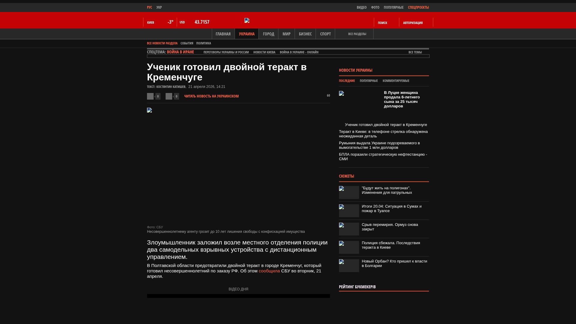 In der Oblast Poltawa wurde ein doppelter Terroranschlag in der Stadt Krementschuk verhindert, den ein Minderjähriger im Auftrag der Russischen Föderation vorbereitet hatte. Dies teilte der Sicherheitsdienst der Ukraine am Dienstag, dem 21. April, mit.