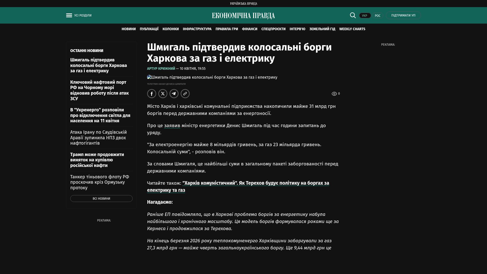 Die Stadt Charkiw und die kommunalen Versorgungsunternehmen von Charkiw haben Schulden in Höhe von fast 31 Mrd. Hrywnja bei staatlichen Unternehmen für Energieträger angehäuft.