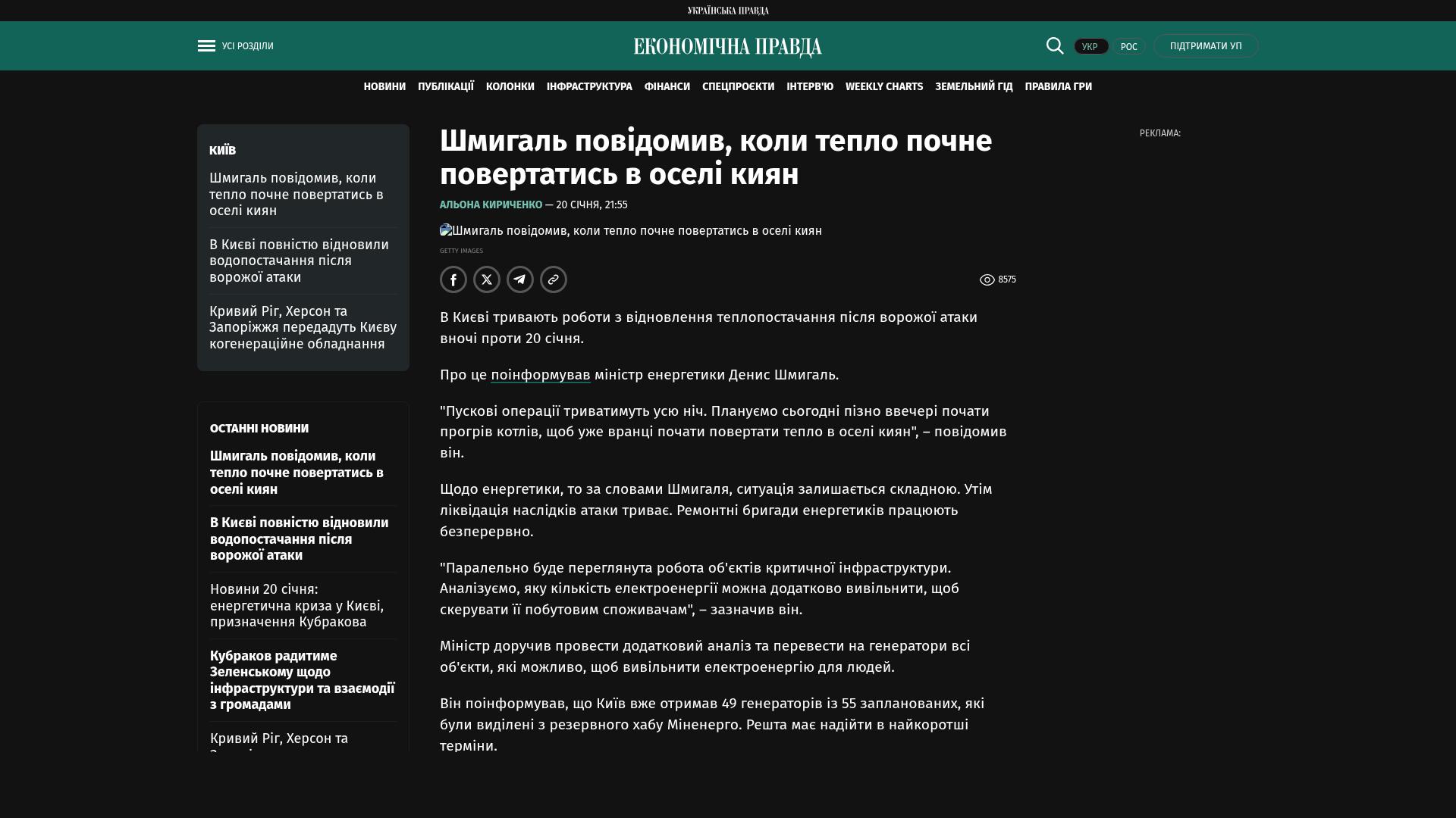 Dies gab Energieminister Denys Schmyhal bekannt.