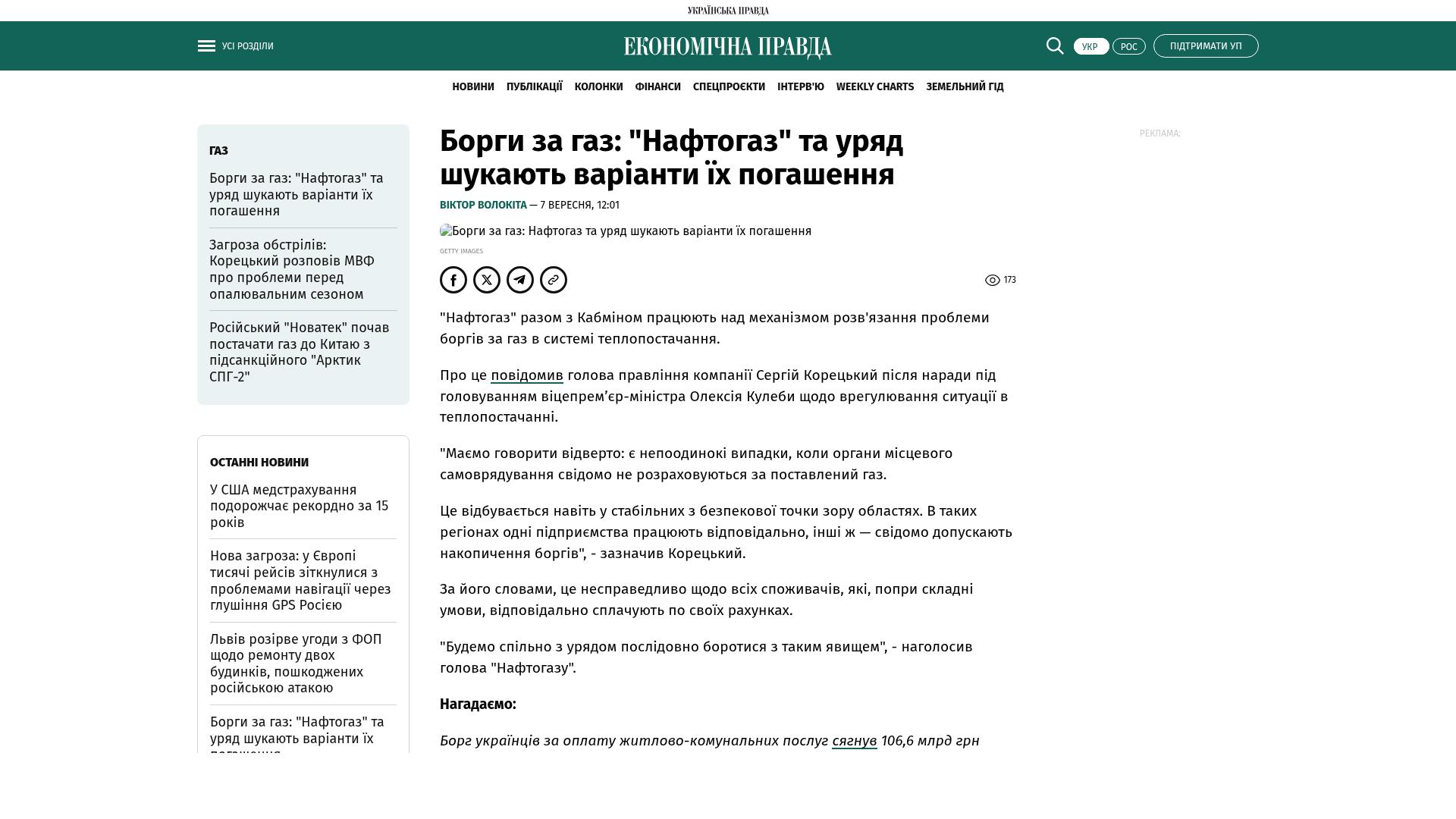 „Naftohas und das Ministerkabinett arbeiten an einem Mechanismus, um das Problem der Gasschulden im Heizungssystem zu lösen.