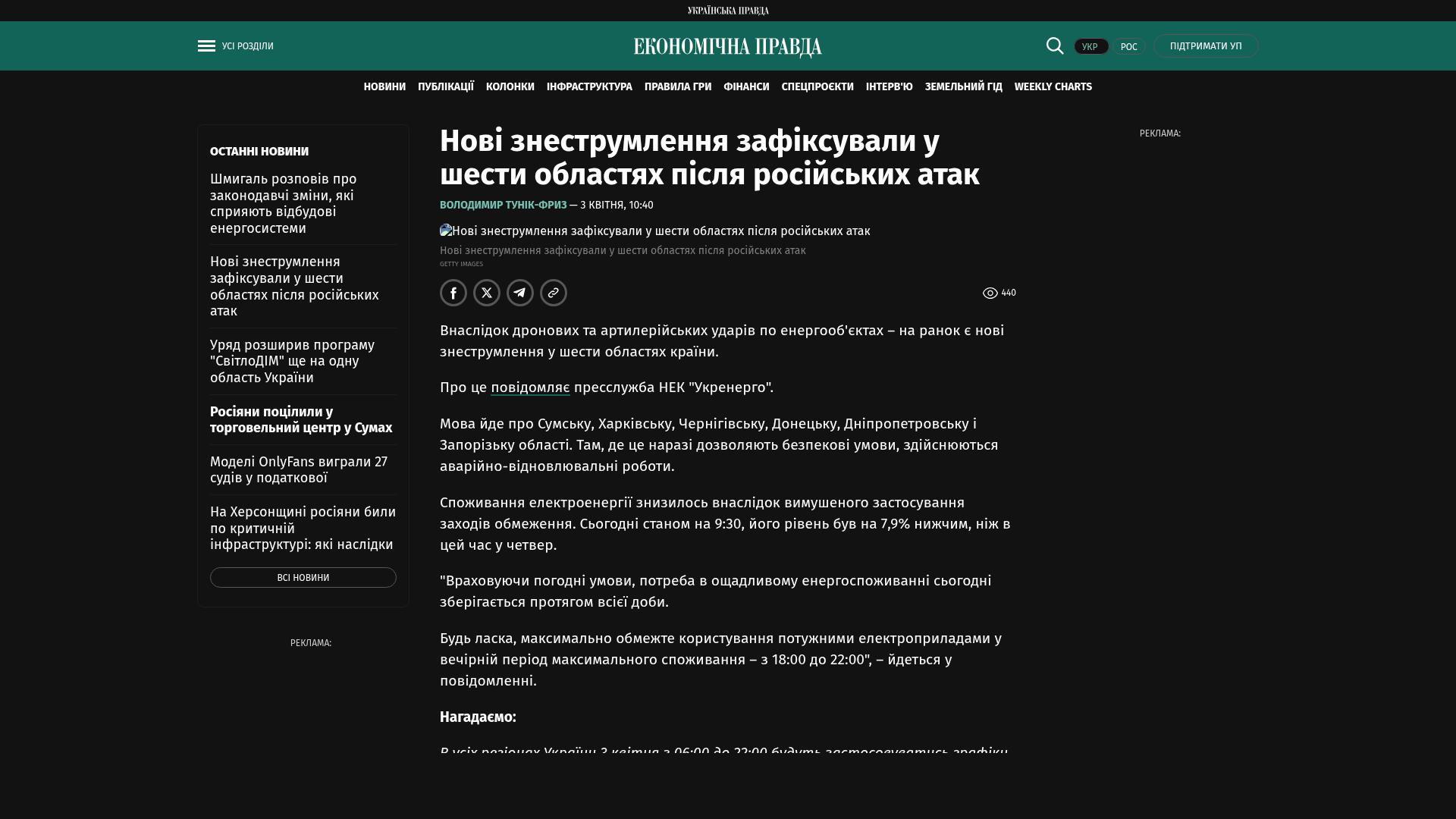 Bildschirmfoto des Originalartikels auf epravda.com.ua