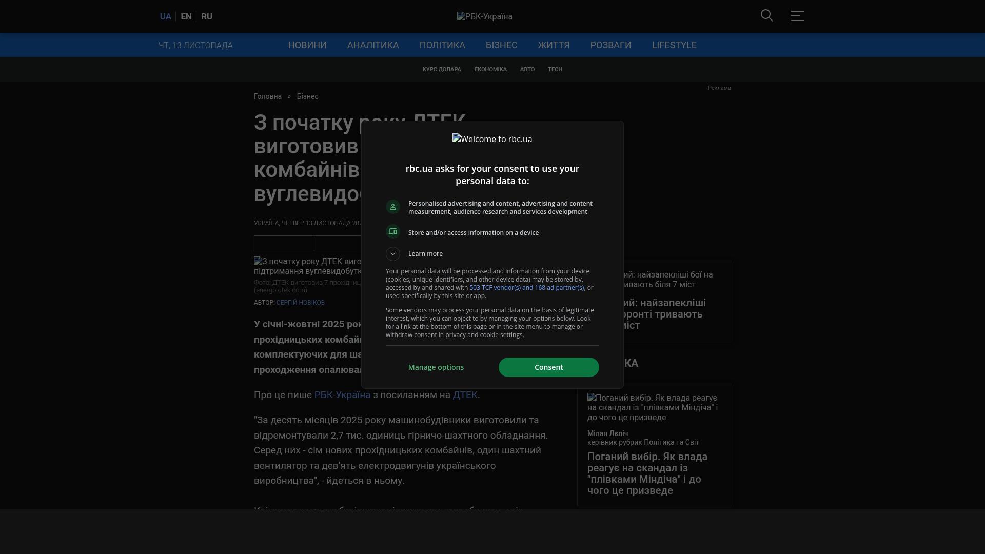 Bildschirmfoto des Originalartikels auf rbc.ua