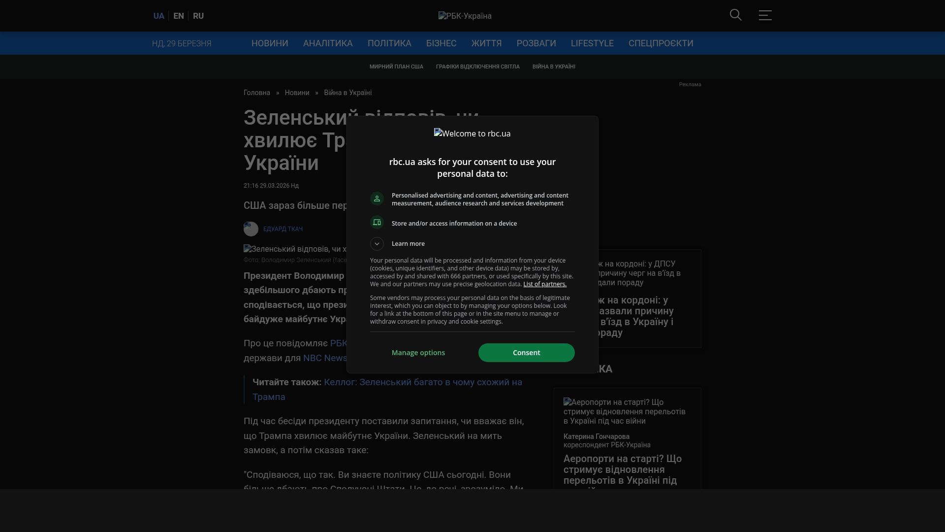 Bildschirmfoto des Originalartikels auf rbc.ua