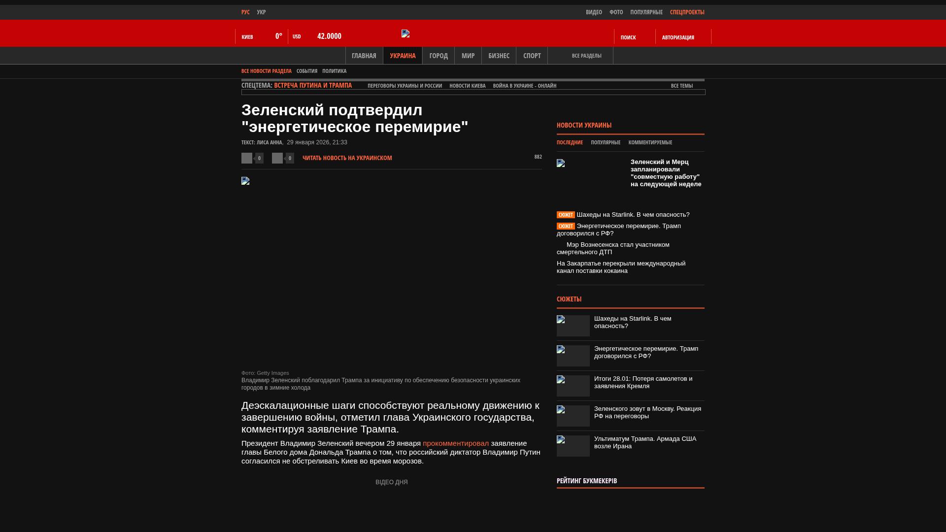 Präsident Wolodymyr Selenskyj kommentierte am Abend des 29. Januar die Erklärung des US-Präsidenten Donald Trump, dass der russische Präsident Wladimir Putin zugestimmt habe, Kiew während der Kälteperiode nicht zu beschießen.