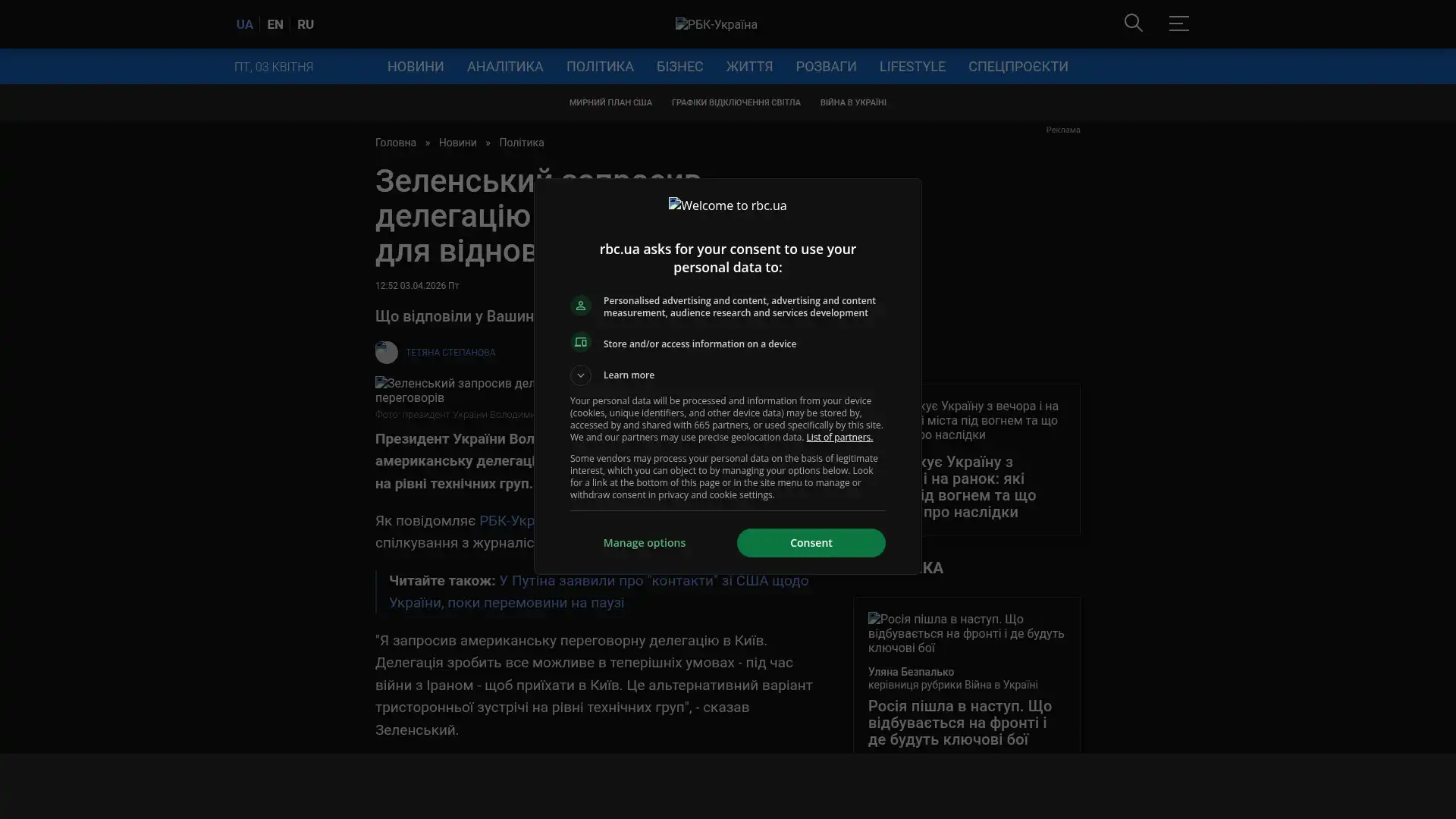 Bildschirmfoto des Originalartikels auf rbc.ua