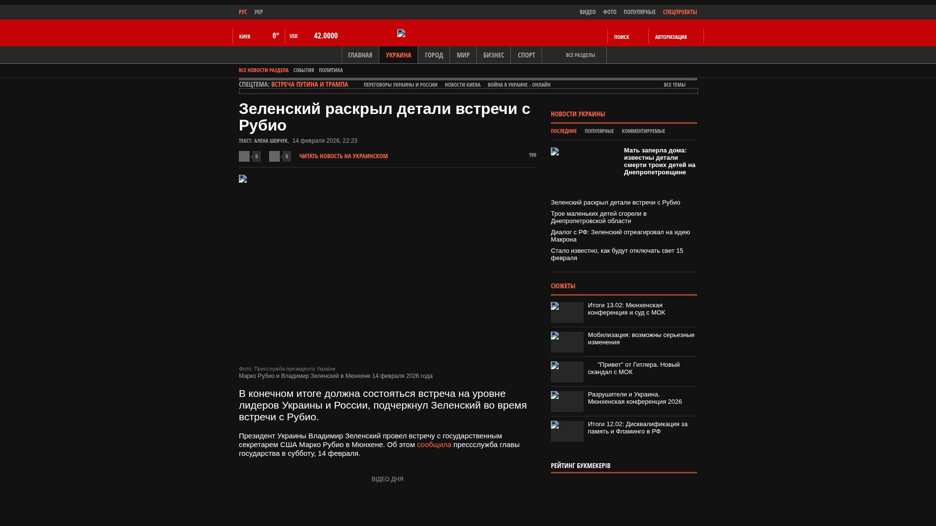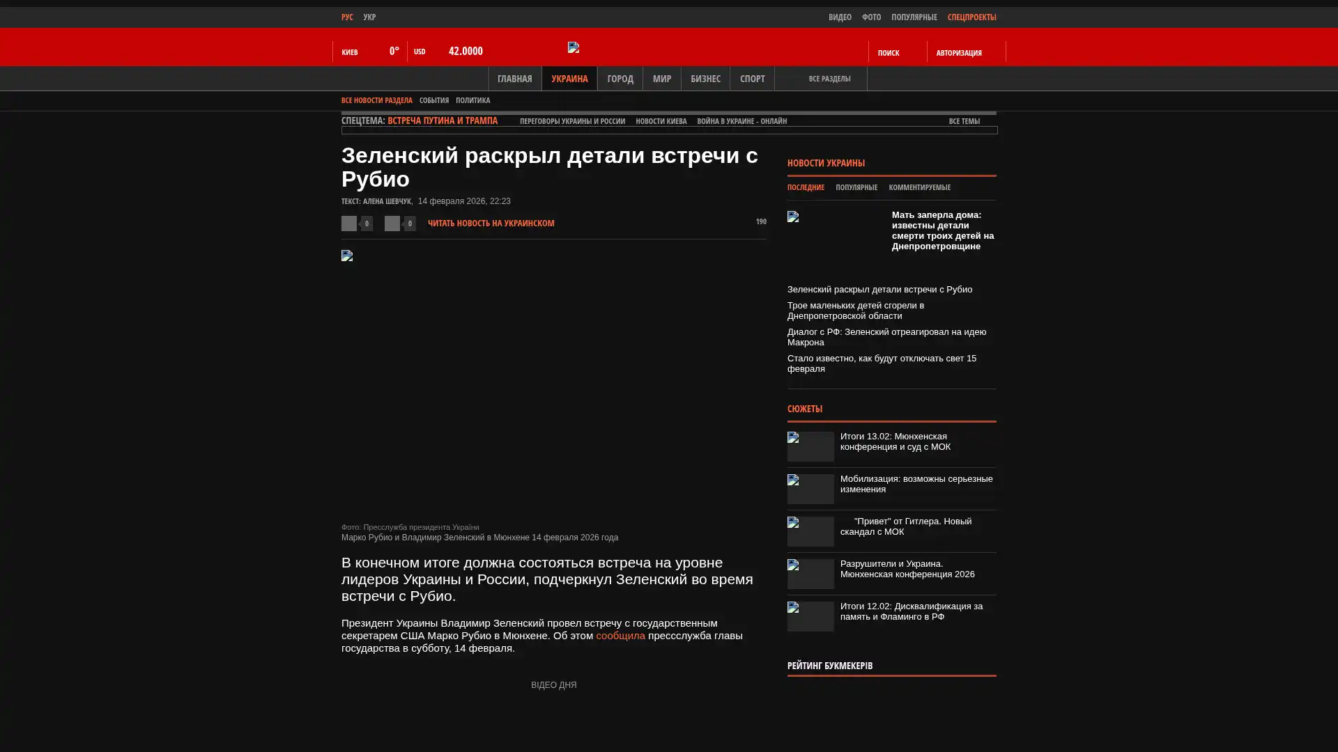 Der Präsident der Ukraine, Wolodymyr Selenskyj, traf sich in München mit dem US-Staatssekretär Marco Rubio. Dies teilte die Pressestelle des Staatsoberhauptes am Samstag, dem 14. Februar, mit.